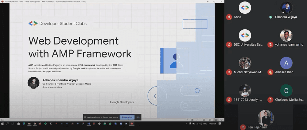 Tahun 2020 menyaksikan lonjakan dalam pembelajaran online, karena pandemi mempercepat adopsi platform virtual. Merangkul pergeseran ini, Decodes Media bekerja sama dengan Google untuk mengadakan Webinar yang berpusat pada teknologi Accelerated Mobile Pages (AMP). AMP adalah kerangka kerja sumber terbuka yang dirancang untuk mengoptimalkan kinerja halaman web di perangkat seluler, memastikan waktu muat yang lebih cepat dan pengalaman pengguna yang mulus. Memahami signifikansi AMP dalam pengembangan web modern, Webinar ini bertujuan untuk melengkapi mahasiswa dengan pengetahuan praktis tentang teknologi mutakhir ini.
